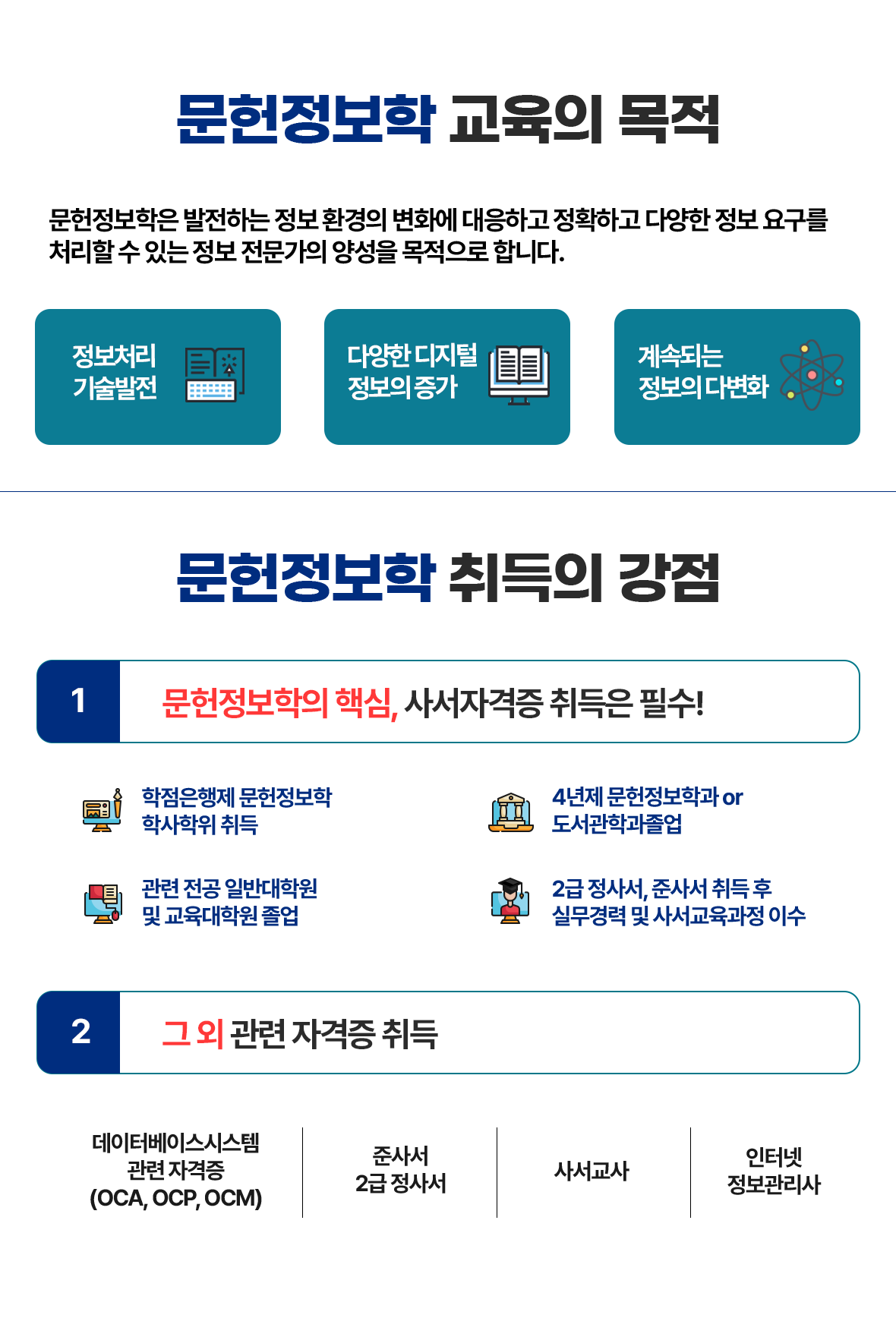 정보커뮤니케이션론, 출판과저작권, 특수도서관운영론, 학교도서관경영론, 한국서지